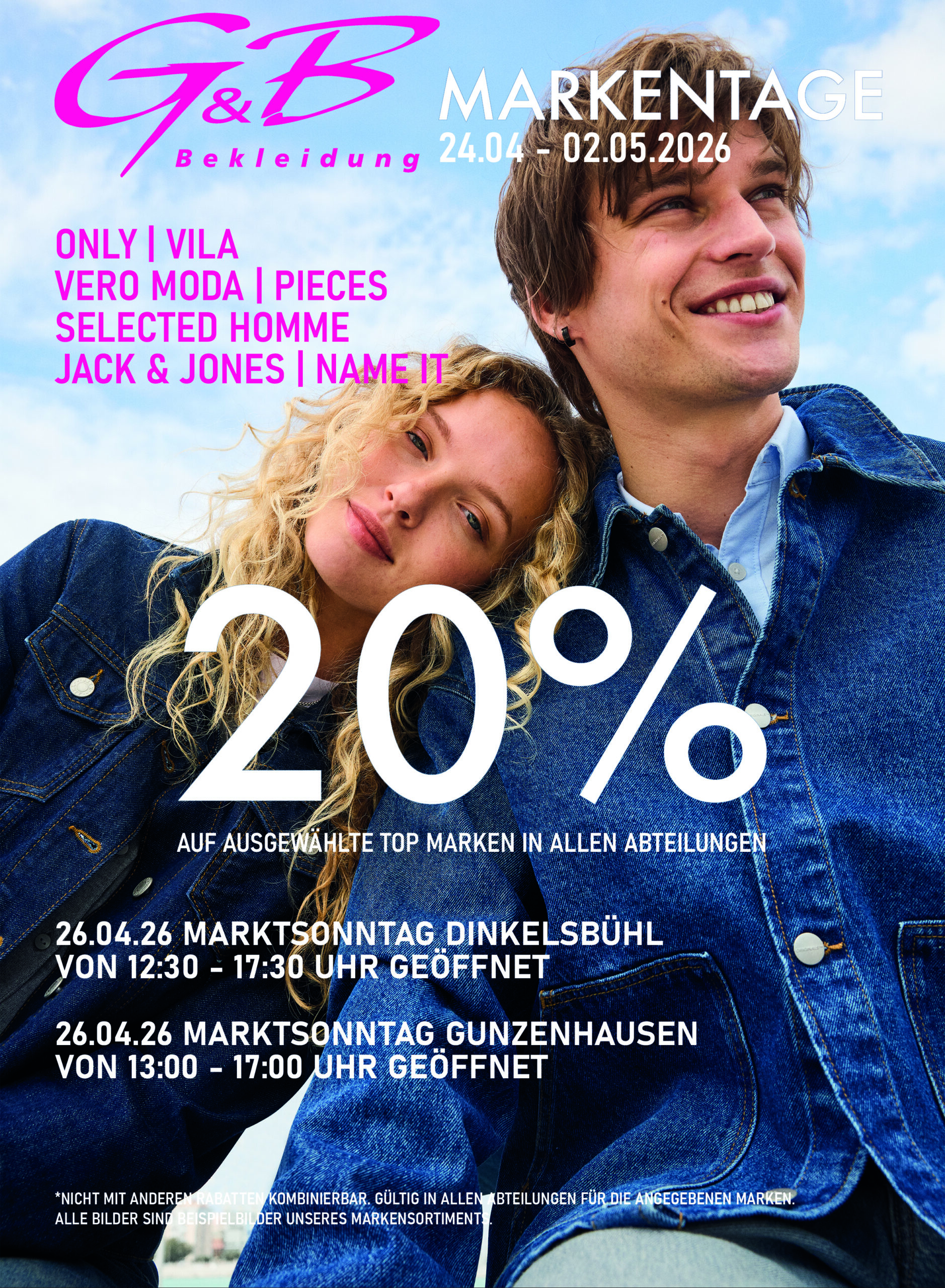 Jetzt Ihre neue Lieblingshose zum Schnäppchen-Preis sichern! Bis zum 21.03.26 erhalten Sie in allen Abteilungen 20% Rabatt auf Jeans und Hosen.